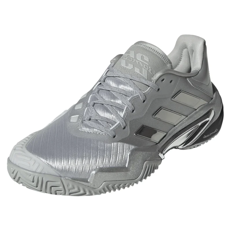 The adidas Men`s Barricade 13 Silver Edition Tennis Shoe is designed for a tennis player who needs support and stability to compete at