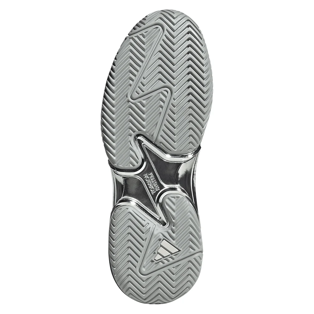 The adidas Men`s Barricade 13 Silver Edition Tennis Shoe is designed for a tennis player who needs support and stability to compete at the highest level. The Barricade uses recycled BOOST material in an improved abrasion pattern for the shoes` medial upper. The tongue has been refined for a soft and stretchy feel. For torsional stability, adidas built the Barricade with a TPU midfoot shank. New in this version is a dual-density midsole construction, which places a lighter and softer foam in the heel and a firmer foam in the forefoot. This creates more lateral stability and better overall comfort. Numerous ATP and WTA touring professionals wear the Barricade. To celebrate 25 years of the Barricade, the tongue has a special “25” logo.